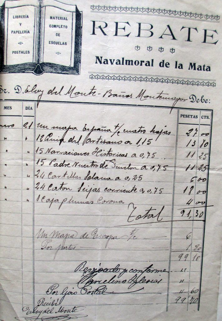 Material de escuela y libros solicitados por los maestros de Baños de Montemayor en varios años