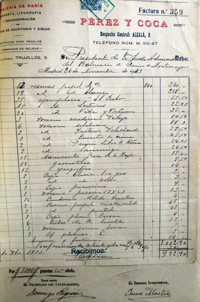 A principios del siglo XX será la Junta del balneario quien se haga cargo del presupuesto para el material de escuela, siempre a petición de los maestros y maestras.