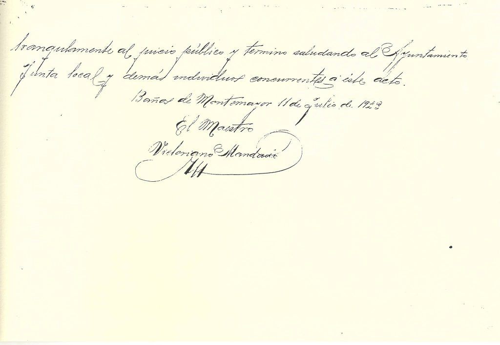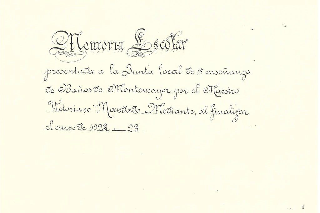Fue presentada esta memoria a la Junta Local de Primera Enseñanza de Baños de Montemayor en julio de 1923.