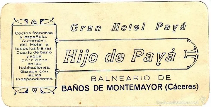 En 1930 se remite instancia por parte del dueño del hotel Payá a la Diputación Provincial de Cáceres, pidiendo que su hotel ostentara el título de recomendado por el Patronato Nacional del Turismo. Pero dicha instancia se remite de nuevo a Baños de Montemayor.